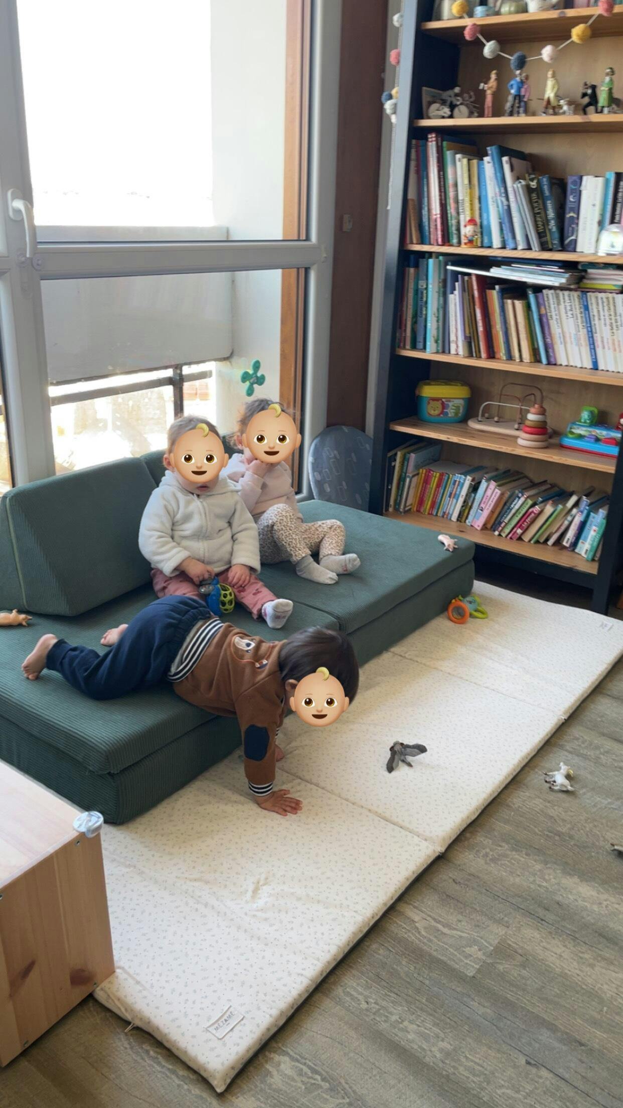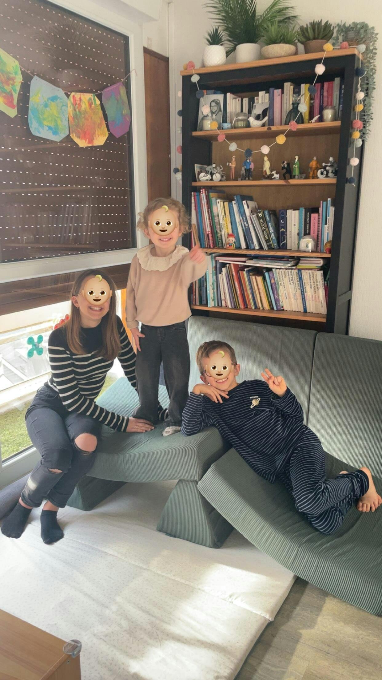 super confortable et modulable. Les enfants l'adorent! Nous aussi. On a fait 2 espaces de lecture pour le moment, mais on les combinera quand les enfants seront plus grands. A la livraison les dossiers étaient tout tellement compressés qu'on a eu peur qu'ils ne reprennent pas leur forme. Mais ça se remet progressivement sur la nuit donc pas de panique si ça vous arrive.