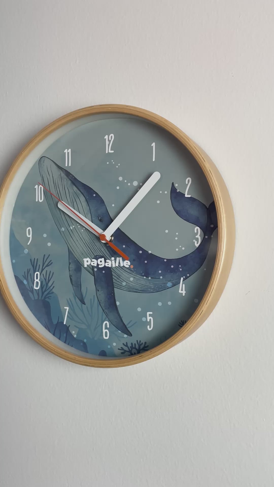 La version murale, en bois de hêtre et mécanisme silencieux, est à la fois belle, solide et parfaite pour la chambre. Elle décore, rassure et accompagne l’autonomie de l’enfant, tout en évitant le fameux tic-tac qui empêche de dormir. 😴