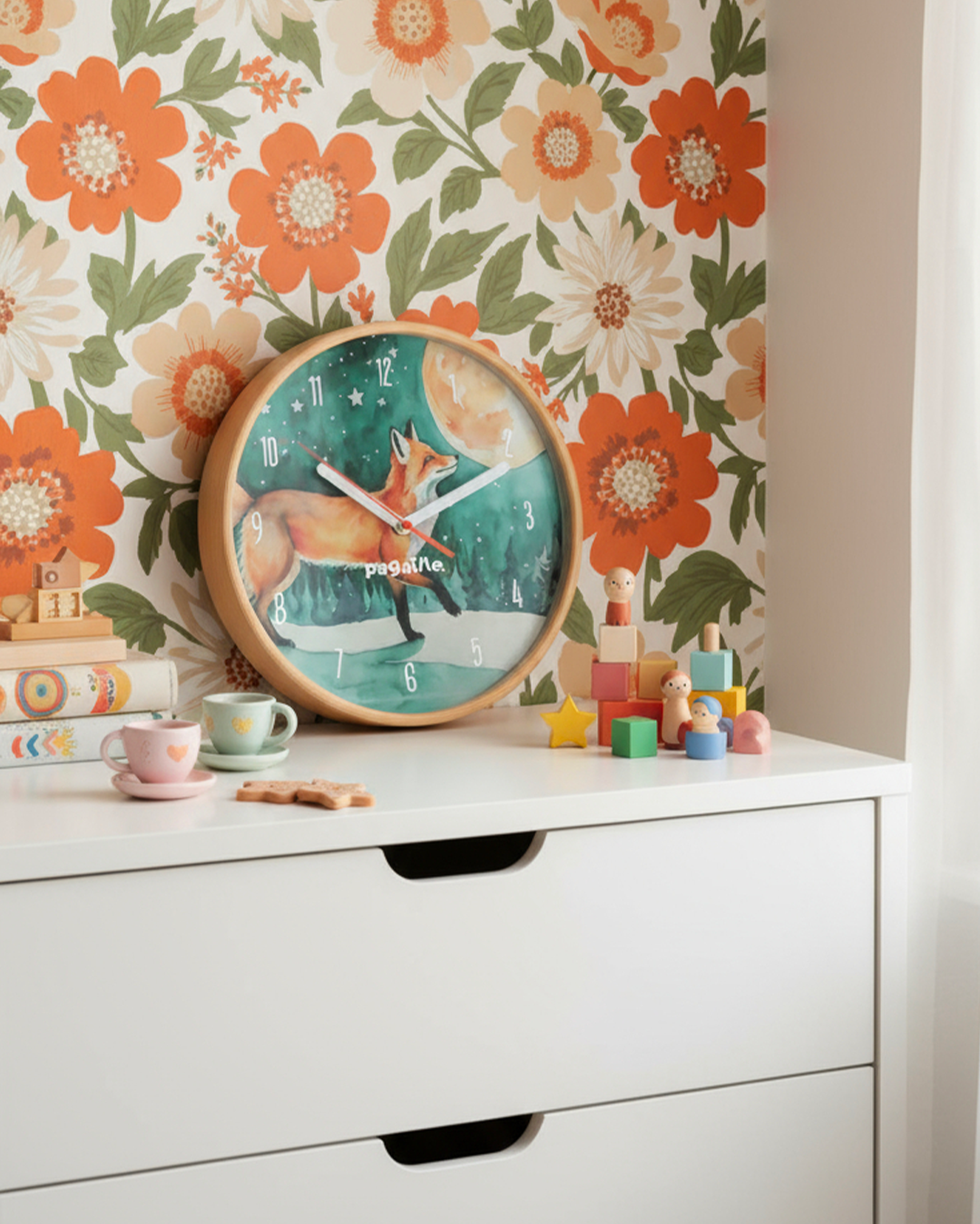 LâHorloge Pagille Kids a Ă©tĂ© conçue pour ĂȘtre aussi belle que fonctionnelle. Avec un diamĂštre de 25 cm, elle trouve parfaitement sa place dans toutes les chambres, quâelles soient grandes ou petites. Ni trop imposante, ni trop discrĂšte, elle devient un point de repĂšre Ă©lĂ©gant pour les enfants et un objet dĂ©co harmonieux pour la chambre.